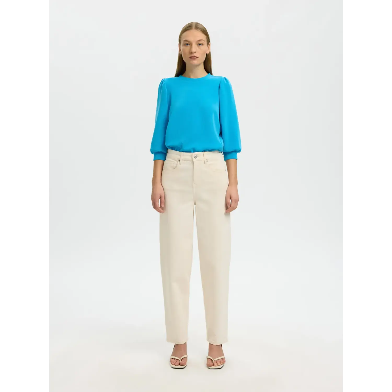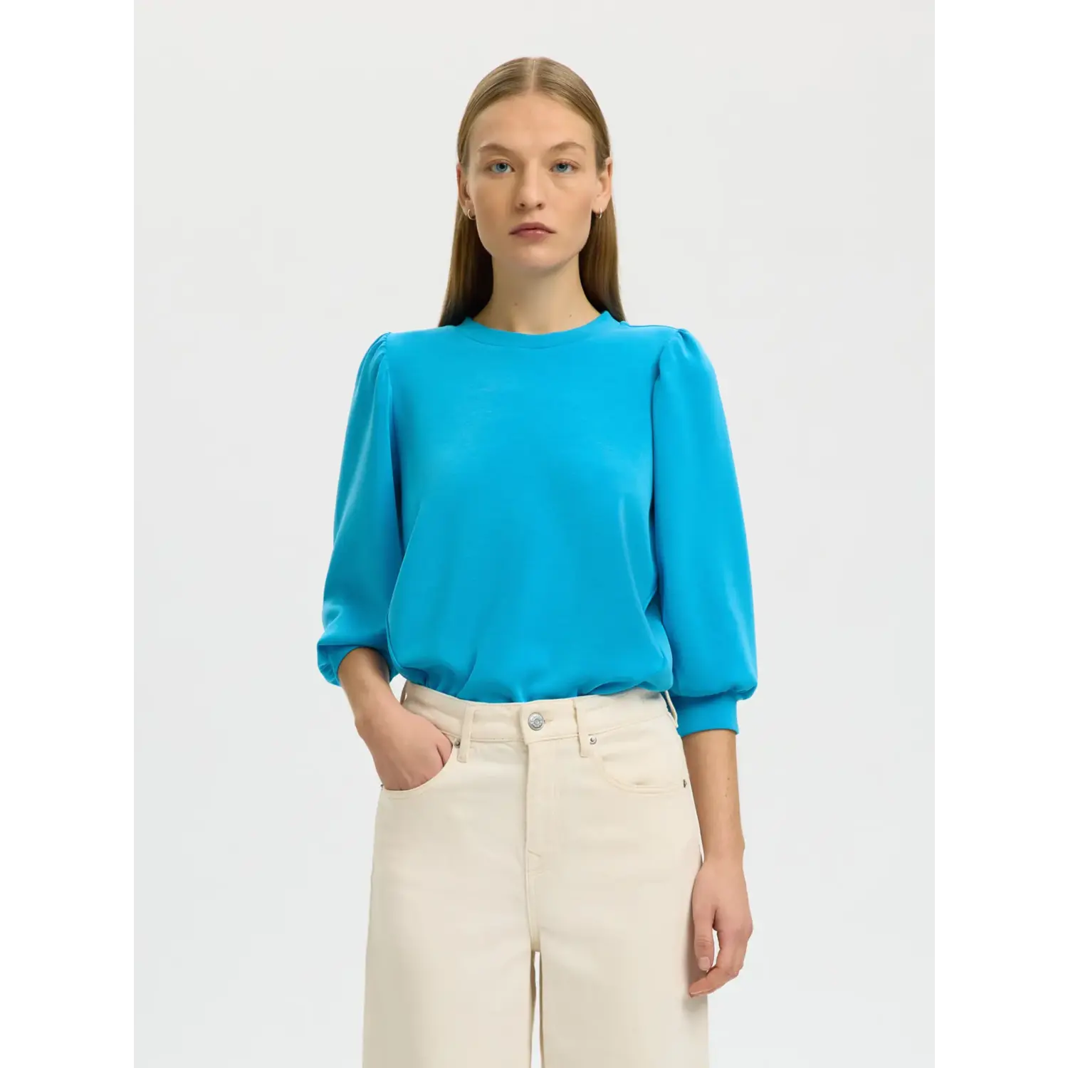 Selected Women SLWTenny 3/4 Sweat Top Hel Blauw