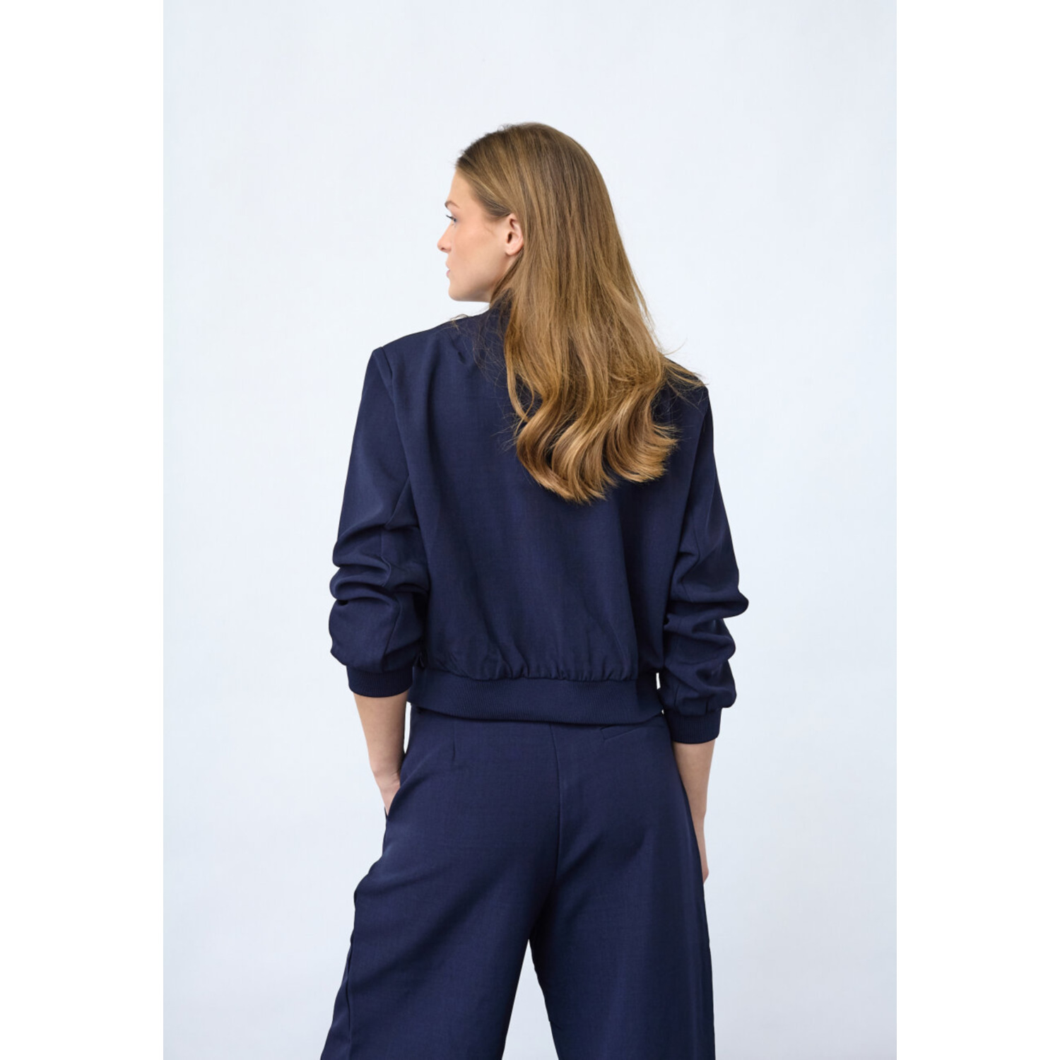 Materiaal: 96% polyester 4% elastaan Lengte: kort Pasvorm: bomber Wasvoorschrift: 30°C fijnwas Omschrijving: De Sisters Point GARWIN-JA20 is een kort en stijlvol bomber jasje dat perfect past bij de GREAT-PA3 broek. Het jasje heeft een effen look, knoopsluiting aan de voorkant en twee handige zakken. De brede geribbelde elastische boorden bij hals, taille en polsen geven een sportieve, trendy uitstraling. Kleur fabrikant: marine Halslijn: rond Mouwlengte: lange mouwen Sluiting: drukknopen
