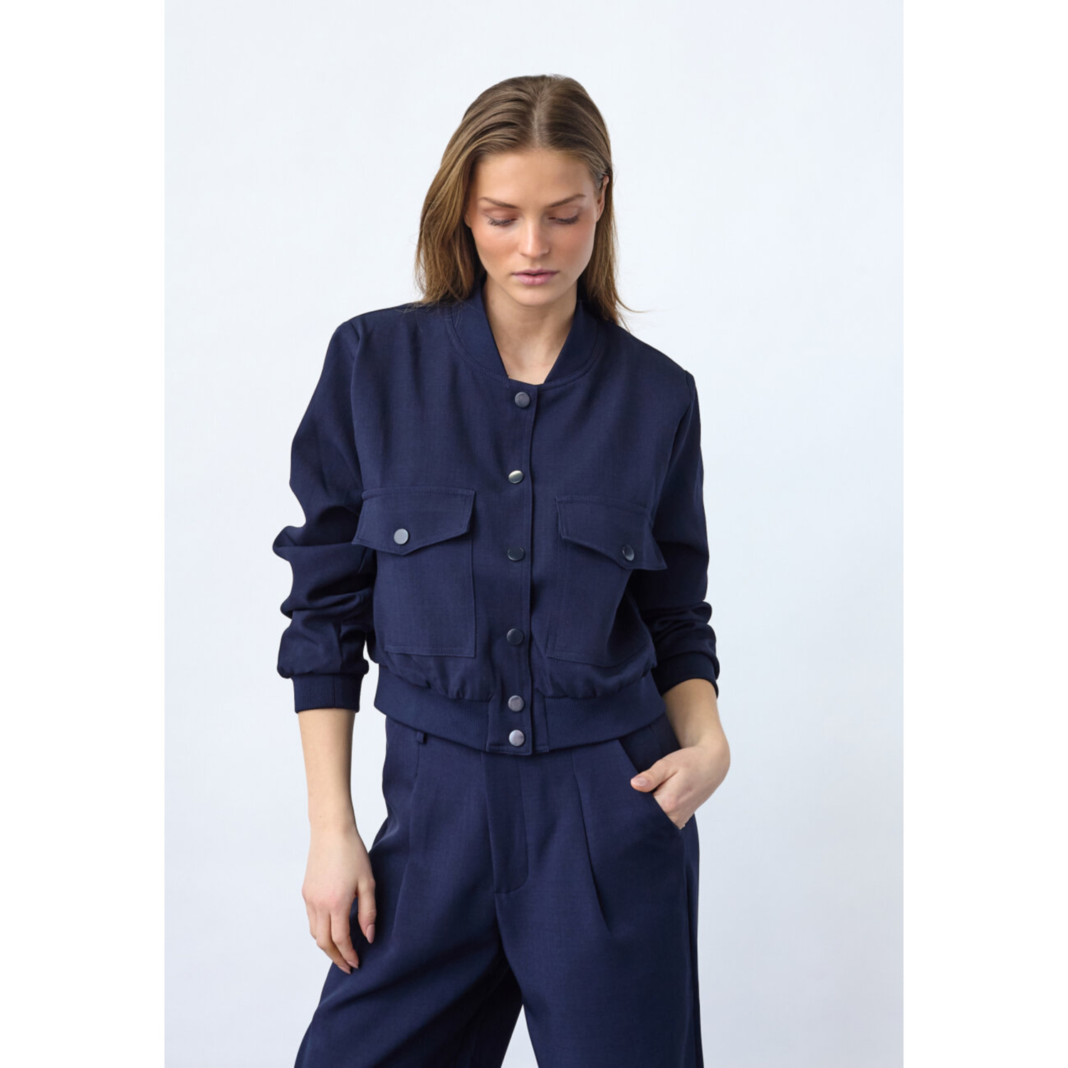 Omschrijving: De Sisters Point GARWIN-JA20 is een kort en stijlvol bomber jasje dat perfect past bij de GREAT-PA3 broek. Het jasje heeft een effen look, knoopsluiting aan de voorkant en twee handige zakken. De brede geribbelde elastische boorden bij hals, taille en polsen geven een sportieve, trendy uitstraling.