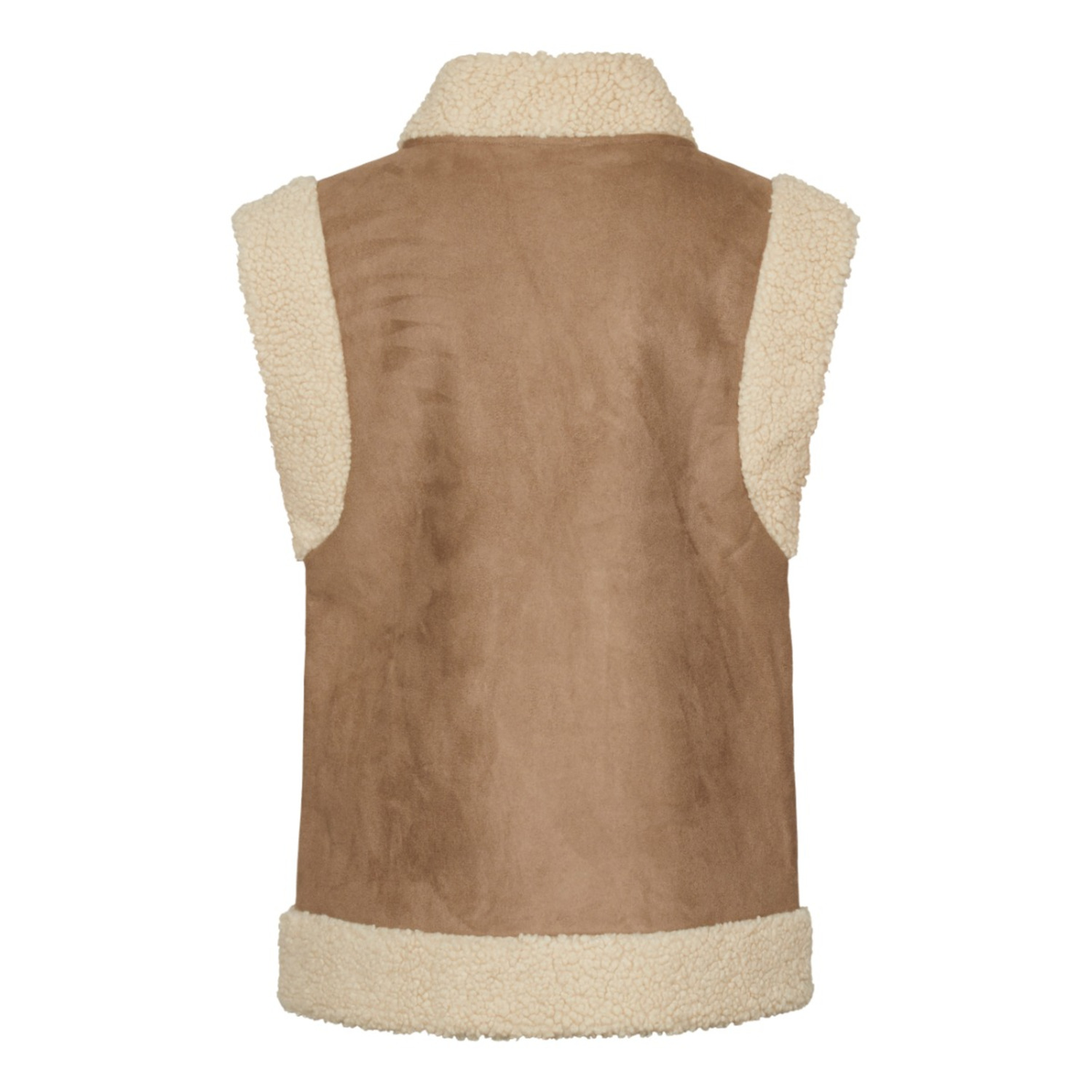 Bijzonderheden: Een stoer vest in leerlook van Sisters Point . Het heeft een neutrale beige tint en kan gemakkelijk over een breisel of met een sweatshirt worden gedragen. Het heeft zachte randen die het een warme en casual uitstraling geven. Gebruik hem dit najaar gerust als tussenjas.