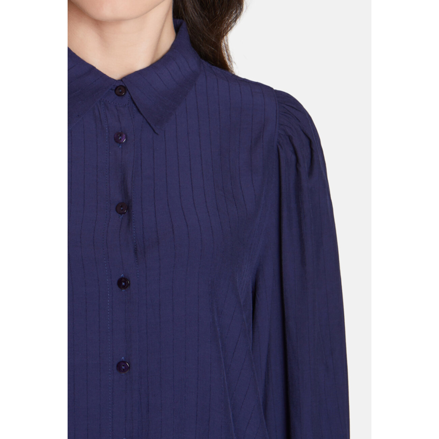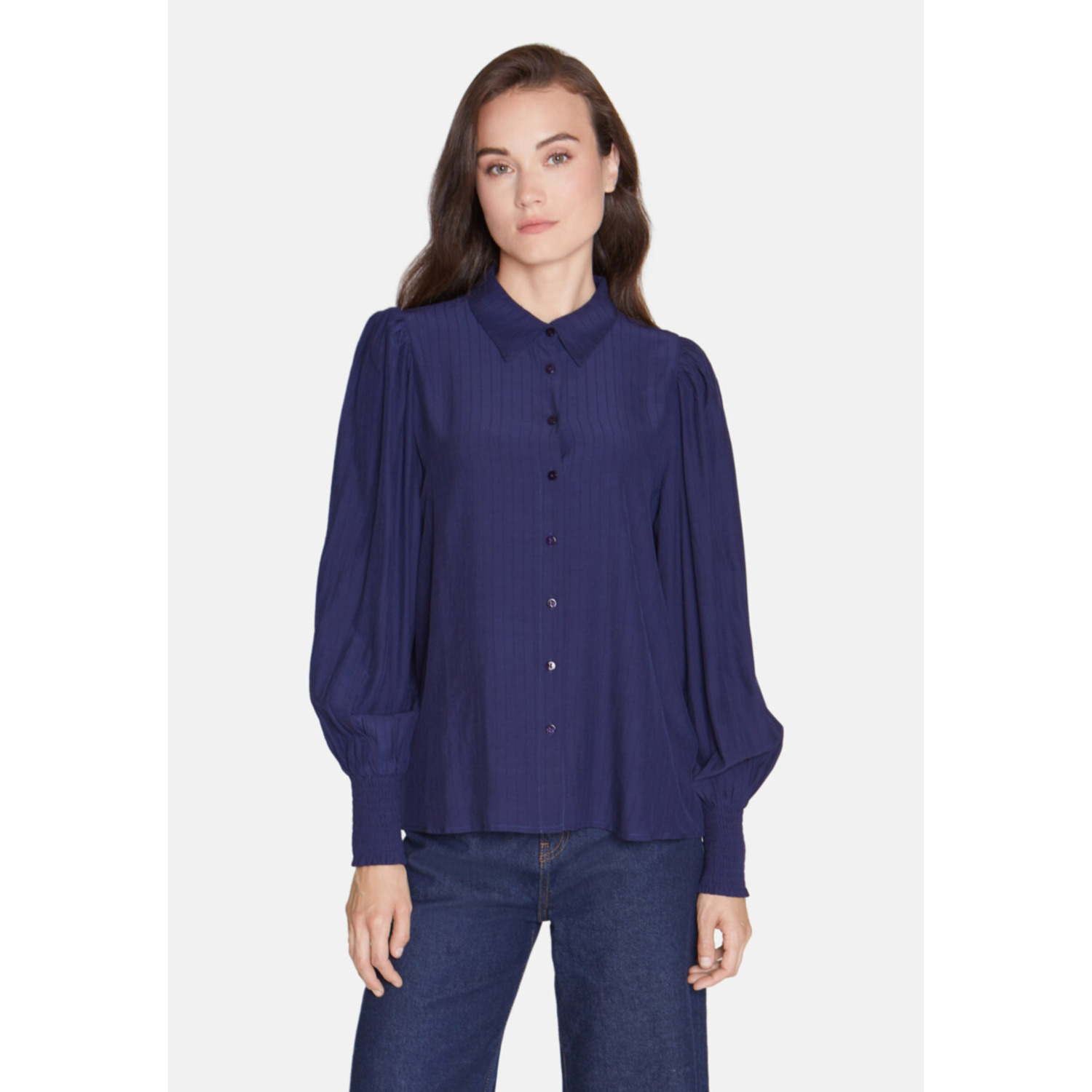 Materiaal: 55% Polyester 45% Viscose Lengte: normale lengte Pasvorm: regular fit Wasvoorschrift: 30°C fijnwas Omschrijving: De Sisters Point Vida Blouse in blauw is een elegante blouse met een subtiel glansstreepje in de stof voor een chique, verfijnde look. De blouse heeft een pofmouw met elastische manchetten, wat zorgt voor een vrouwelijke en comfortabele pasvorm. Perfect te combineren met een jeans of pantalon — ideaal voor een stijlvolle everyday look of een feestelijke gelegenheid. Kleur fabrikant: navy Mouwlengte: lange mouwen Sluiting: knoopjes